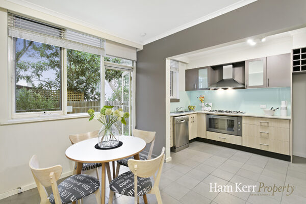 Perfectly positioned in one of Hawthorn East’s most walkable lifestyle pockets, this beautifully modernised ground-floor apartment combines the solidity of an older-style build with the comfort and style of contemporary upgrades. Set within a boutique block of just eight, it offers a warm and inviting feel the moment you step inside, with a generous open-plan living, dining and kitchen area designed for everyday ease.