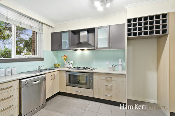 The standout feature is the exceptional kitchen, upgraded well beyond standard apartment expectations and ideal for those who love to cook or entertain. It includes a 900mm extra-wide oven, five-burner gas stove, quality rangehood, dishwasher, excellent bench space and abundant storage. From here, the living zone opens to a private balcony with a peaceful garden outlook.